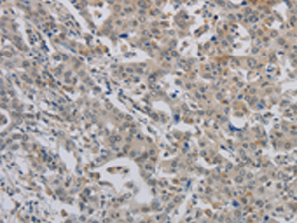The image is immunohistochemistry of paraffin-embedded Human liver cancer tissue using P03759(ALX4 Antibody) at dilution 1/20. (Original magnification: ×200) |