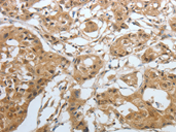 The image is immunohistochemistry of paraffin-embedded Human lung cancer tissue using P07074(AMPH Antibody) at dilution 1/30. (Original magnification: ×200) |