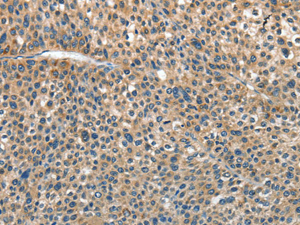 The image is immunohistochemistry of paraffin-embedded Human liver cancer tissue using P07079(ANGPT1 Antibody) at dilution 1/30. (Original magnification: ×200) |