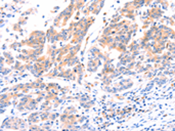 The image is immunohistochemistry of paraffin-embedded Human gastric cancer tissue using P04567(ANKZF1 Antibody) at dilution 1/35. (Original magnification: ×200) |
