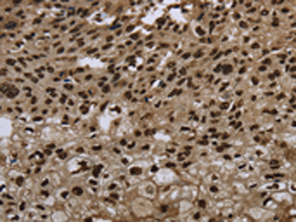 The image is immunohistochemistry of paraffin-embedded Human esophagus cancer tissue using P05009(ANP32E Antibody) at dilution 1/20. (Original magnification: ×200) |