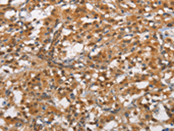 The image is immunohistochemistry of paraffin-embedded Human gasrtic cancer tissue using P04337(ANPEP Antibody) at dilution 1/80. (Original magnification: ×200) |