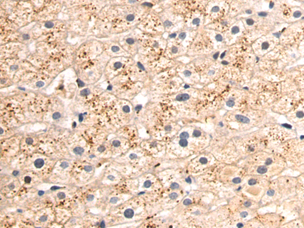 The image is immunohistochemistry of paraffin-embedded Human liver cancer tissue using P04710(ANXA2R Antibody) at dilution 1/50. (Original magnification: ×200) |