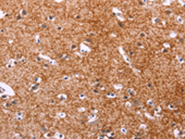 The image is immunohistochemistry of paraffin-embedded Human brain tissue using P04288(APMAP Antibody) at dilution 1/30. (Original magnification: ×200) |