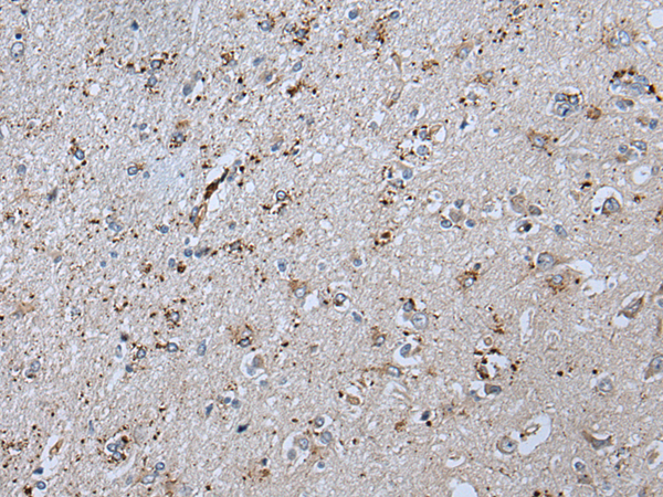 The image is immunohistochemistry of paraffin-embedded Human brain tissue using P12964(APOD Antibody) at dilution 1/30. (Original magnification: ×200) |