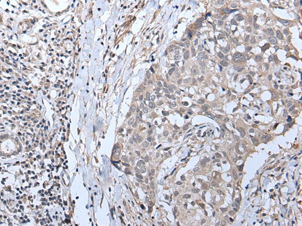 The image is immunohistochemistry of paraffin-embedded Human lung cancer tissue using P12964(APOD Antibody) at dilution 1/30. (Original magnification: ×200) |