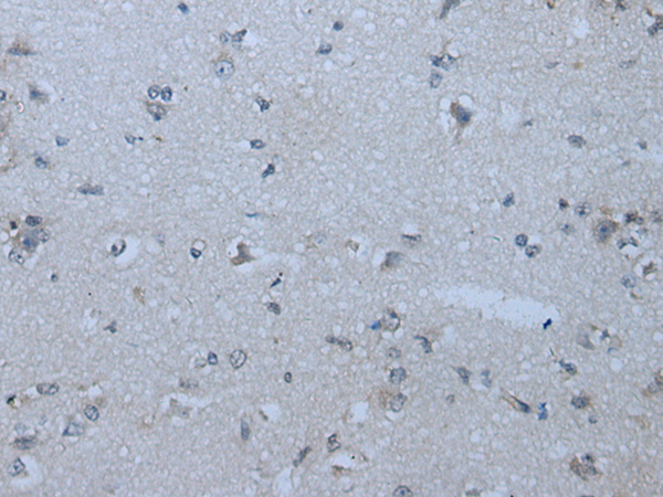 The image is immunohistochemistry of paraffin-embedded Human brain tissue using P12814(APOL4 Antibody) at dilution 1/35. (Original magnification: ×200) |