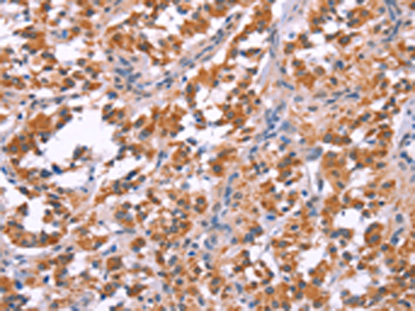 The image is immunohistochemistry of paraffin-embedded Human gastric cancer tissue using P07119(ARC Antibody) at dilution 1/25. (Original magnification: ×200) |