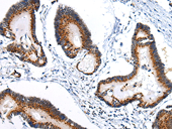 The image is immunohistochemistry of paraffin-embedded Human colorectal cancer tissue using P12441(ARFGAP2 Antibody) at dilution 1/25. (Original magnification: ×200) |