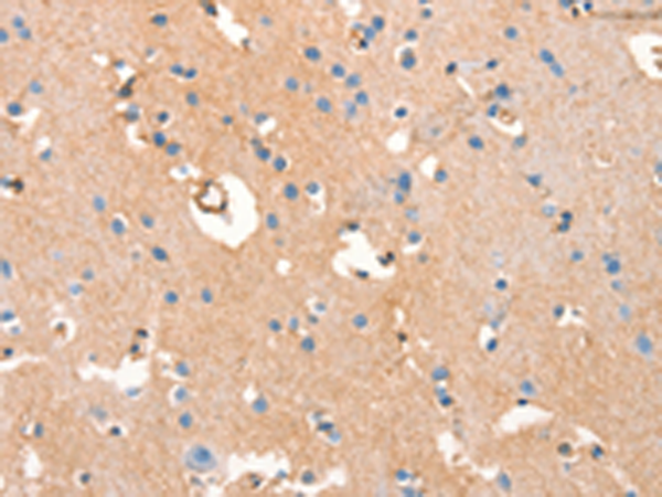 The image is immunohistochemistry of paraffin-embedded Human brain tissue using P11477(ARFGEF2 Antibody) at dilution 1/50. (Original magnification: ×200) |
