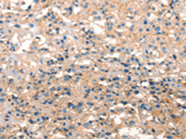The image is immunohistochemistry of paraffin-embedded Human liver cancer tissue using P11480(ARHGAP4 Antibody) at dilution 1/25. (Original magnification: ×200) |
