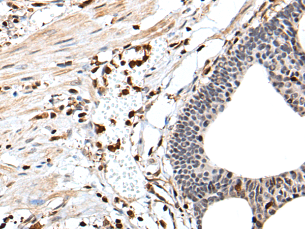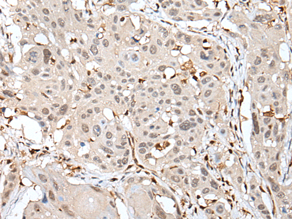 The image is immunohistochemistry of paraffin-embedded Human esophagus cancer tissue using P05825(ARHGDIB Antibody) at dilution 1/35. (Original magnification: ×200) |