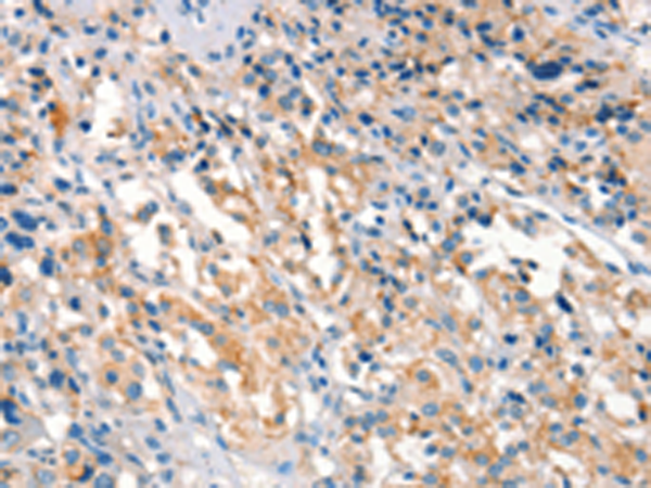 The image is immunohistochemistry of paraffin-embedded Human thyroid cancer tissue using P04596(ARHGEF11 Antibody) at dilution 1/25. (Original magnification: ×200) |