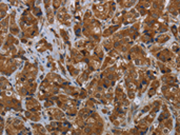 The image is immunohistochemistry of paraffin-embedded Human breast cancer tissue using P11894(ARHGEF12 Antibody) at dilution 1/30. (Original magnification: ×200) |