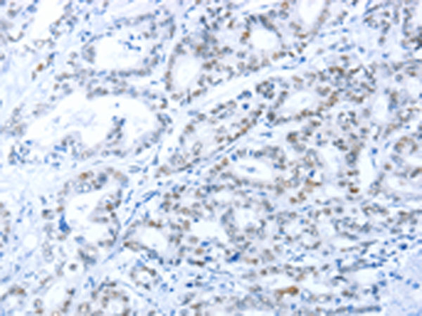The image is immunohistochemistry of paraffin-embedded Human gastric cancer tissue using P04584(ARID1A Antibody) at dilution 1/80. (Original magnification: ×200) |