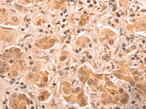 The image is immunohistochemistry of paraffin-embedded Human liver cancer tissue using P11198(ARPC4 Antibody) at dilution 1/50. (Original magnification: ×200) |