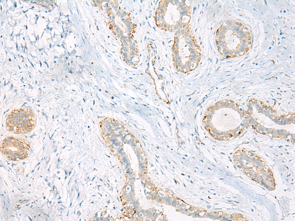The image is immunohistochemistry of paraffin-embedded Human breast cancer tissue using P11242(ARRB1 Antibody) at dilution 1/20. (Original magnification: ×200) |