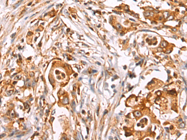 The image is immunohistochemistry of paraffin-embedded Human gastric cancer tissue using P13716(ARRDC4 Antibody) at dilution 1/35. (Original magnification: ×200) |