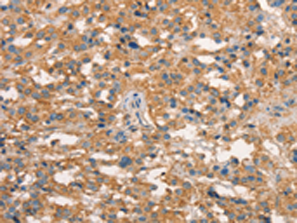 The image is immunohistochemistry of paraffin-embedded Human liver cancer tissue using P11482(ART4 Antibody) at dilution 1/50. (Original magnification: ×200) |