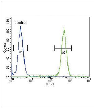 ASMT Antibody (Center) (Cat. #P32860) flow cytometric analysis of 293 cells (right histogram) compared to a negative control cell (left histogram).FITC-conjugated goat-anti-rabbit secondary antibodies were used for the analysis. |