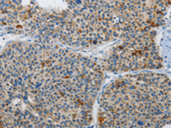 The image is immunohistochemistry of paraffin-embedded Human liver cancer tissue using P11484(ATG4A Antibody) at dilution 1/30. (Original magnification: ×200) |