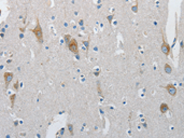 The image is immunohistochemistry of paraffin-embedded Human brain tissue using P11484(ATG4A Antibody) at dilution 1/30. (Original magnification: ×200) |
