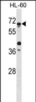 APG4D Antibody (L235) (Cat. #P30102) western blot analysis in HL-60 cell line lysates (35ug/lane).This demonstrates the APG4D antibody detected the APG4D protein (arrow). |
