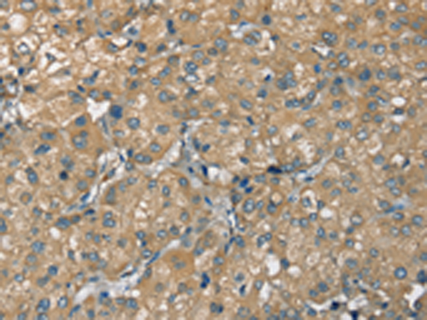 The image is immunohistochemistry of paraffin-embedded Human liver cancer tissue using P12154(ATP2A3 Antibody) at dilution 1/30. (Original magnification: ×200) |