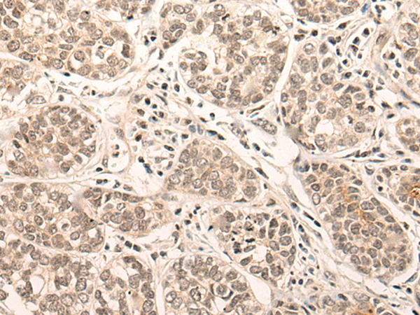 The image is immunohistochemistry of paraffin-embedded Human esophagus cancer tissue using P11588(ATR Antibody) at dilution 1/25. (Original magnification: ×200) |
