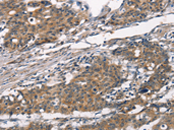 The image is immunohistochemistry of paraffin-embedded Human gastric cancer tissue using P04709(ATRN Antibody) at dilution 1/30. (Original magnification: ×200) |
