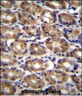 AXIN1 Antibody (C-term) (Cat. #P33526)immunohistochemistry analysis in formalin fixed and paraffin embedded human stomach tissue followed by peroxidase conjugation of the secondary antibody and DAB staining.This data demonstrates the use of AXIN1 Antibody (C-term) for immunohistochemistry. Clinical relevance has not been evaluated. |