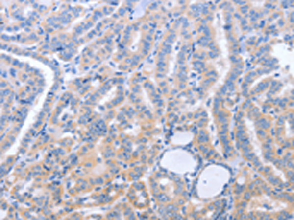 The image is immunohistochemistry of paraffin-embedded Human thyroid cancer tissue using P04758(B3GAT1 Antibody) at dilution 1/40. (Original magnification: ×200) |