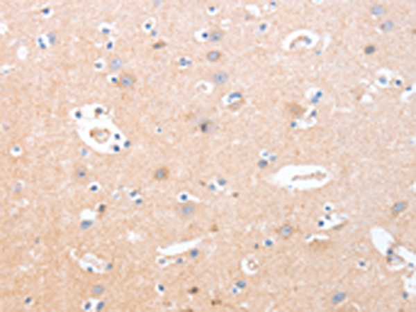 The image is immunohistochemistry of paraffin-embedded Human brain tissue using P04758(B3GAT1 Antibody) at dilution 1/40. (Original magnification: ×200) |