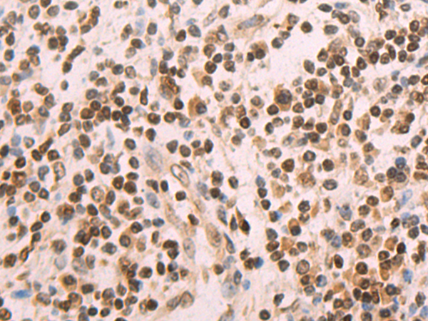 The image is immunohistochemistry of paraffin-embedded Human gastric cancer tissue using P12428(BAZ1B Antibody) at dilution 1/50. (Original magnification: ×200) |