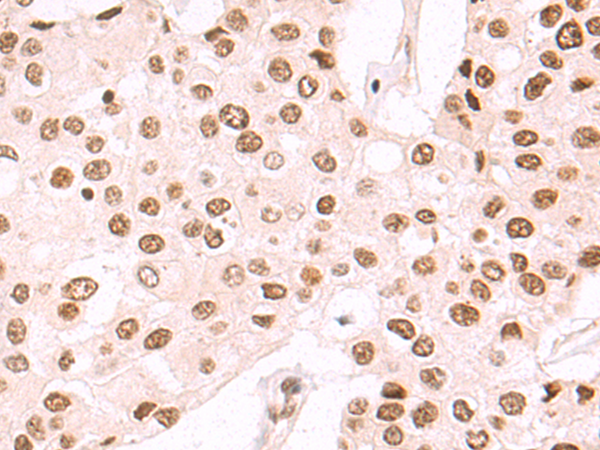 The image is immunohistochemistry of paraffin-embedded Human breast cancer tissue using P05550(BAZ1B Antibody) at dilution 1/50. (Original magnification: ×200) |