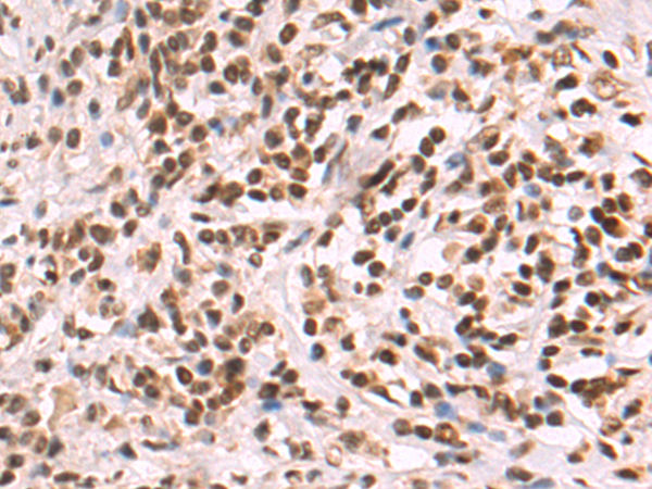 The image is immunohistochemistry of paraffin-embedded Human gastric cancer tissue using P05550(BAZ1B Antibody) at dilution 1/50. (Original magnification: ×200) |