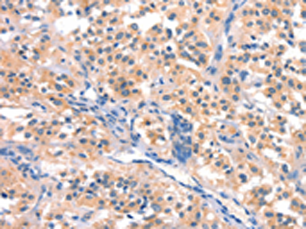 The image is immunohistochemistry of paraffin-embedded Human gasrtic cancer tissue using P11238(BCL3 Antibody) at dilution 1/15. (Original magnification: ×200) |