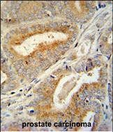 BCORL1 antibody (N-term) (Cat. #P30865) immunohistochemistry analysis in formalin fixed and paraffin embedded human prostate carcinoma followed by peroxidase conjugation of the secondary antibody and DAB staining. This data demonstrates the use of the BCORL1 antibody (N-term) for immunohistochemistry. Clinical relevance has not been evaluated. |