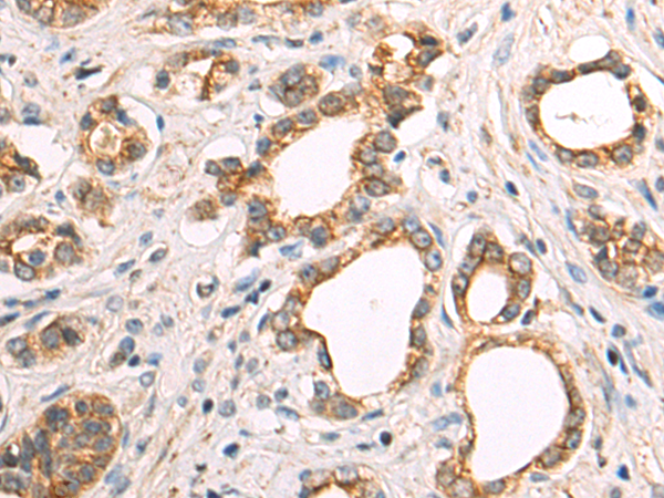 The image is immunohistochemistry of paraffin-embedded Human prostate cancer tissue using P03782(BECN1 Antibody) at dilution 1/50. (Original magnification: ×200) |