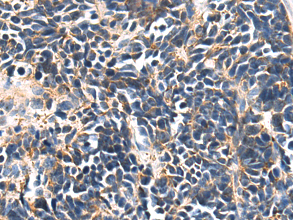 The image is immunohistochemistry of paraffin-embedded Human esophagus cancer tissue using P03782(BECN1 Antibody) at dilution 1/50. (Original magnification: ×200) |