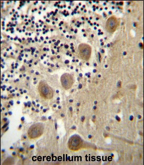 BEND6 Antibody (C-term) (Cat. #P31111)immunohistochemistry analysis in formalin fixed and paraffin embedded human cerebellum tissue followed by peroxidase conjugation of the secondary antibody and DAB staining.This data demonstrates the use of BEND6 Antibody (C-term) for immunohistochemistry. Clinical relevance has not been evaluated. |