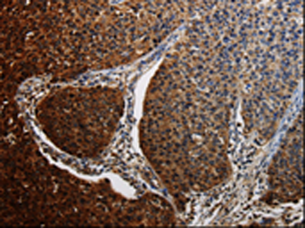 The image is immunohistochemistry of paraffin-embedded Human renal cancer tissue using P07130(BID Antibody) at dilution 1/25. (Original magnification: ×200) |