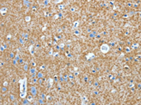 The image is immunohistochemistry of paraffin-embedded Human brain tissue using P07131(BIN1 Antibody) at dilution 1/30. (Original magnification: ×200) |