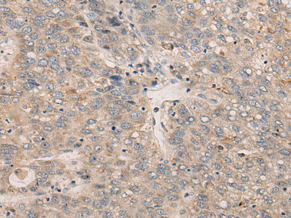 The image is immunohistochemistry of paraffin-embedded Human liver cancer tissue using P12953(BMP10 Antibody) at dilution 1/35. (Original magnification: ×200) |