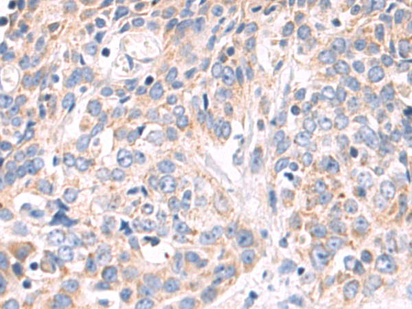 The image is immunohistochemistry of paraffin-embedded Human esophagus cancer tissue using P02735(BMP2 Antibody) at dilution 1/65. (Original magnification: ×200) |