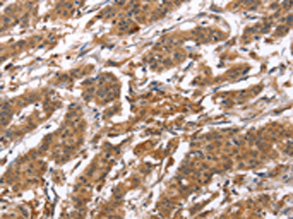 The image is immunohistochemistry of paraffin-embedded Human breast cancer tissue using P11576(BNIP2 Antibody) at dilution 1/50. (Original magnification: ×200) |