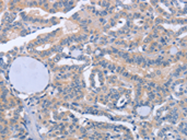 The image is immunohistochemistry of paraffin-embedded Human thyroid cancer tissue using P11604(BOD1 Antibody) at dilution 1/60. (Original magnification: ×200) |