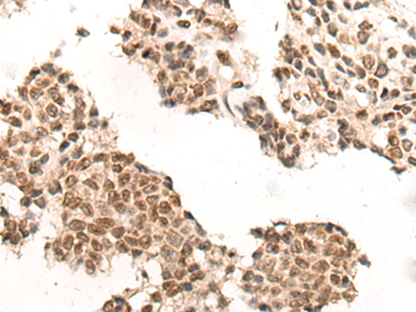The image is immunohistochemistry of paraffin-embedded Human esophagus cancer tissue using P04724(BRD8 Antibody) at dilution 1/25. (Original magnification: ×200) |