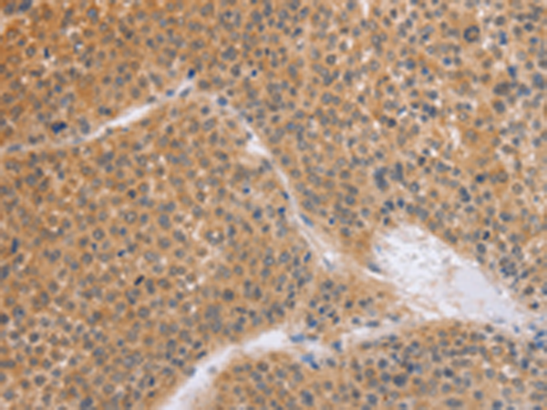 The image is immunohistochemistry of paraffin-embedded Human liver cancer tissue using P11608(BRS3 Antibody) at dilution 1/50. (Original magnification: ×200) |