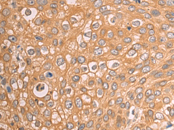 The image is immunohistochemistry of paraffin-embedded Human cervical cancer tissue using P07138(BTG2 Antibody) at dilution 1/95. (Original magnification: ×200) |